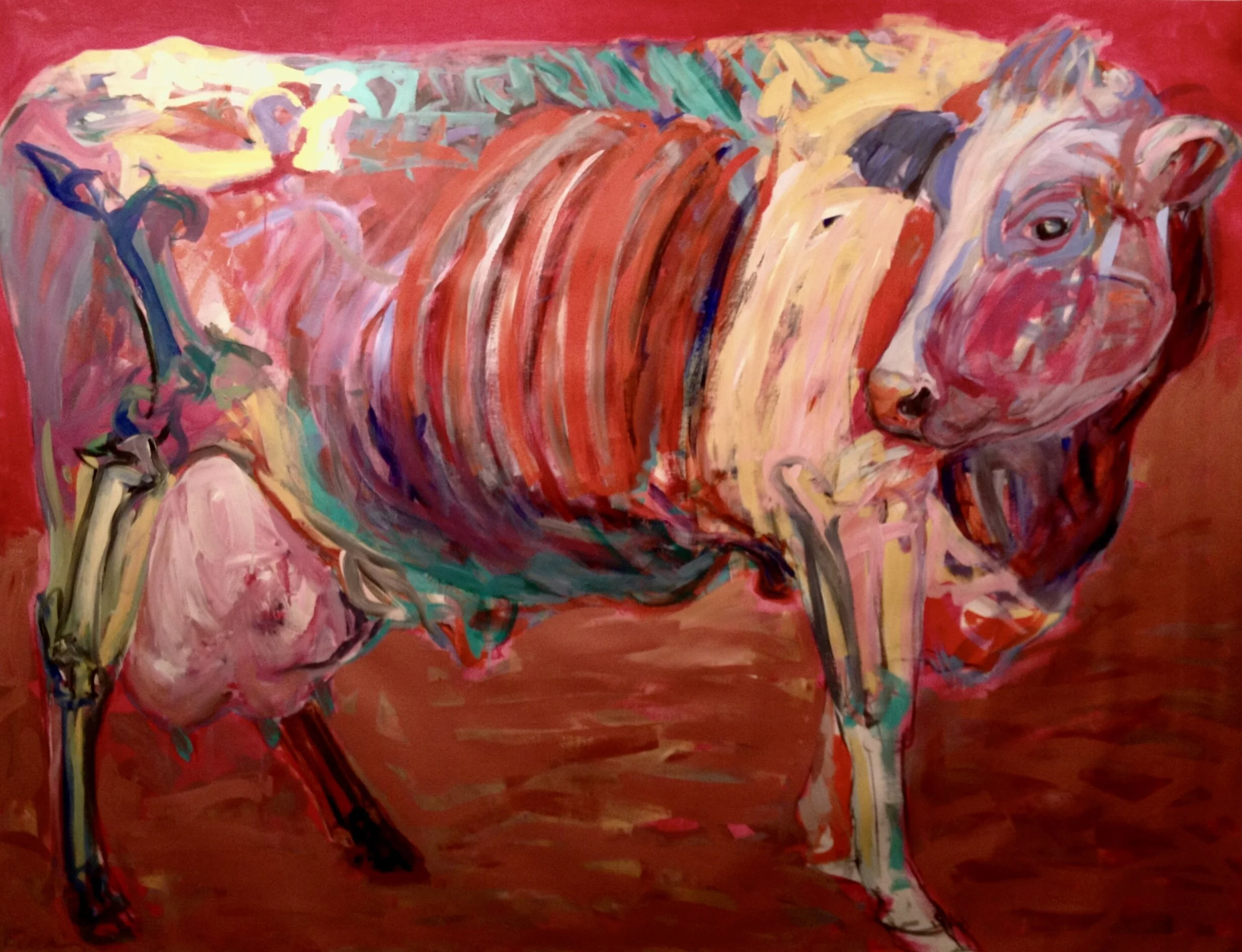 I have chosen to use watercolor in these paintings for it’s unrestricted qualities that allow for spontaneity and speed. Those qualities combined with my loose, energetic drawing technique, enable me to express the frantic euphoria, lust for life and loving camaraderie that I observed in these excited cows.